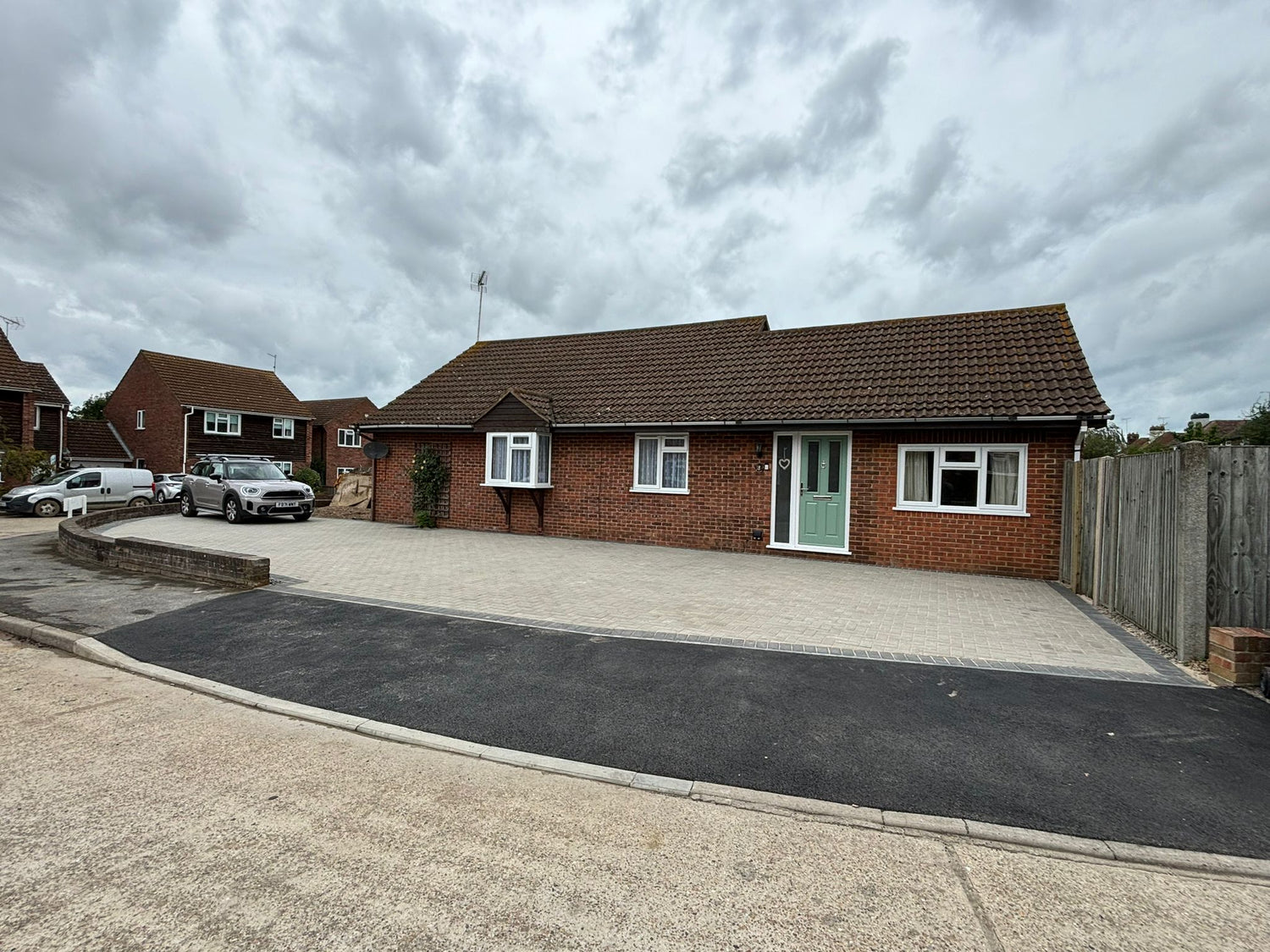Driveway Installation using Brett Silver Haze Blocks with charcoal block edging and a tarmac drop curb.