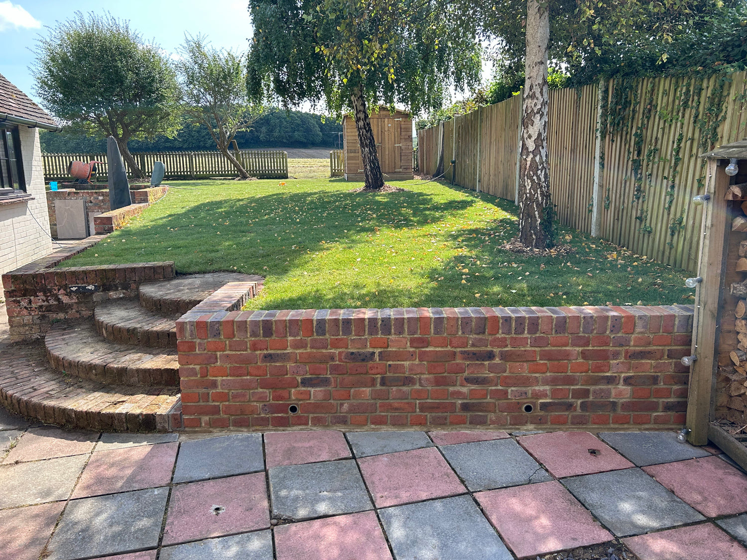English traditional brick retaining wall, with 250m2 turf supplied and installed.